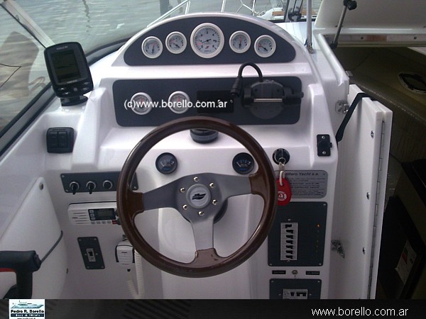 Flaps hidráulicos, faro control remoto, dirección semi-asistida, cocina (Suiza), termotanque, DVD, audio (Sony) c/ 4 parlantes y control remoto, VHF, GPS (Raymarine A 50), malacate eléctrico, inverter, ecosonda, heladera, compás, cerramiento completo con transparentes, carpa (Sumbrella). (No deje de ver mas imágenes de esta embarcación haciendo clic arriba de esta ficha, en "Más fotos"). |