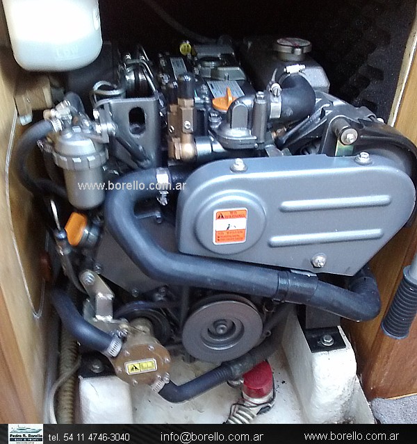 Cama doble a proa, salón con 2 sillones enfrentados y mesa central, cocina, mesa de navegación, baño compartimentado, camarote a popa con cama amplia, buen cockpit con popa mediterranea. DETALLES GRALES:Proa: Bandas revestidas en tapicería o madera natural, asiento de estar, placard , zapatero y repisa . Salón: Bandas revestidas en tapicería o madera natural, respaldos con gavetas, bar y repisa, mesa dinette, escalera de acceso, marco con puerta de acceso al baño, mesa de cartas de abrir , frente para tablero eléctrico y accesorios. Cocina: Alacena de cocina con puertas corredizas, pañol de enceres bajo mesada de cocina con puerta de abrir, depósito de residuos con acceso lateral, gabinete de heladera con tapa de acceso sobre mesada de mármol sintético. Popa: Banda revestida en tapicería y madera , asiento, placard y repisa , pañol de estiba de ropa de cama. Baño: Pañol bajo mesada, placard para ropa húmeda y seca, pasamanos de seguridad, botiquín. Pañol: Estibas para garrafa ,combustible, perchas de cabuyería, accesorios de confort. |