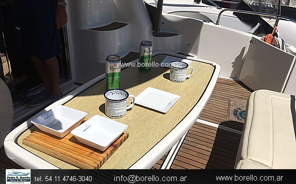 VHF, ecosonda compás, grupo electrógeno Onan diésel, aire acondicionado marino, calefactor Webasto, hélice de proa (bow Thruster), carpa completa, cubre fly, cubre vidrios, bimini en fly y cerramiento completo de cockpit, audio CD/DVD, iluminación LED, cocina, horno, bombas eléctricas presurizadas todas, inodoro eléctrico, ducha en popa y baño, GPS/plotter. (Vea mas imágenes de esta embarcación haciendo clic en la pestaña "Mas Fotos" y video apretando la flechita roja). |