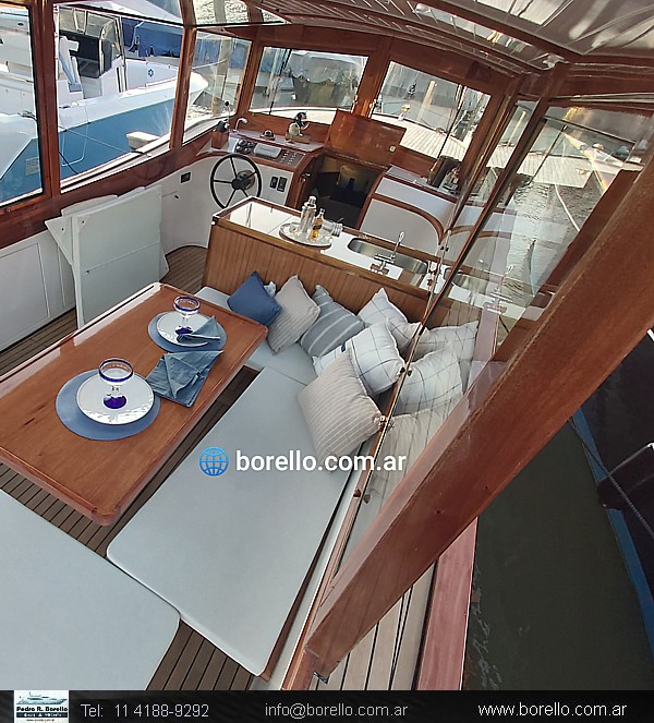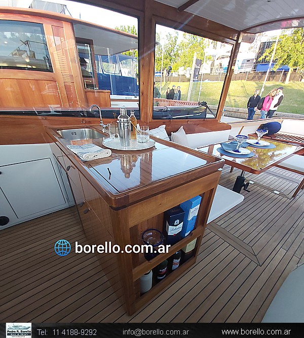 Un clásico de lujo, diseñado por el Arq. Nav. Santiago Lange inspirado en barcos de los años 30, plástico total, línea de eje, 8.000 kg de desplazamiento, bajo calado. Embarcación Cero Horas, precio base mas opcionales, libre de comisión alguna, consúltenos plazos de entrega. |