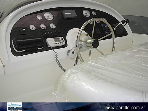 Grupo electrógeno Diesel (Onan USA) 7 Kw., 5 baterías, cargador de baterias/convertidor Heart 2000W, Sala de máquinas insonorizada, 4 filtros de combustible grandes, flaps hidráulicos Bennett, comandos hidráulicos Vetus, baños con inodoro eléctrico y bidet, tapicería en cuero, compás, ecosonda y corredera, morses electónicos Volvo, VHF (Raymarine), malacate eléctrico, plotter, GPS, Radar (Raymarine C70), bocina, TV 25" plano con home Theater (Philips) sistema DVD, VCD, MP3, jpeg, radio am/fm, luces de cortesía en bandas sobre ventanas, luces de cortesía en cockpit, toma tierra 220 v. (Navico), Teca en plataforma popa, escalera al agua revatible, matafuego, arco radar, cubre fly, cubre ventanas, cubre parabrisas (todo en lona Sumbrella USA), parabrisas deflector en acrílico fume.. |