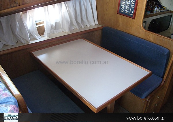 Casco plástico, carroza de madera plastificada, excelente relación precio prestación. Se encuentra en este momento en reparación integral del barco, cubierta e interiores. Se entrega terminado. |
