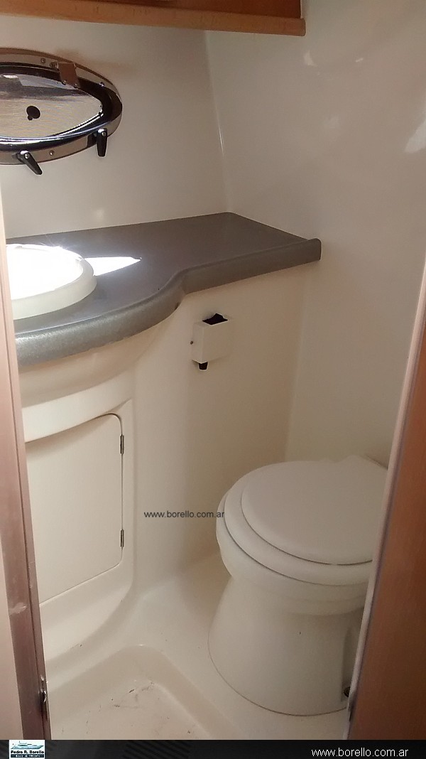 Dinette convertible en cama doble a proa, cucheta doble a popa, mueble cocina con heladera, anafe, microonda y lugar de guarda, Baño. En el Cockpit, sillón timonera muy cómodo on asientos para acompañantes , dinette a popa con asiento convertible en solarium con excelente planchada. Solárium en proa. |