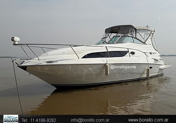 Cama doble en proa convertible en mesa dinette, otra mesa auxiliar desayunador. En popa conejera doble compartimentada con puerta, sector cocina, baño compartimentado con ducha agua f/c, cockpit con asiento timonel y acompañantes, bacha lavamanos, solárium a proa sobre cubierta, plataforma incorporada con puerta de acceso a cockpit. |