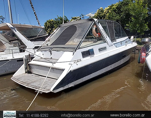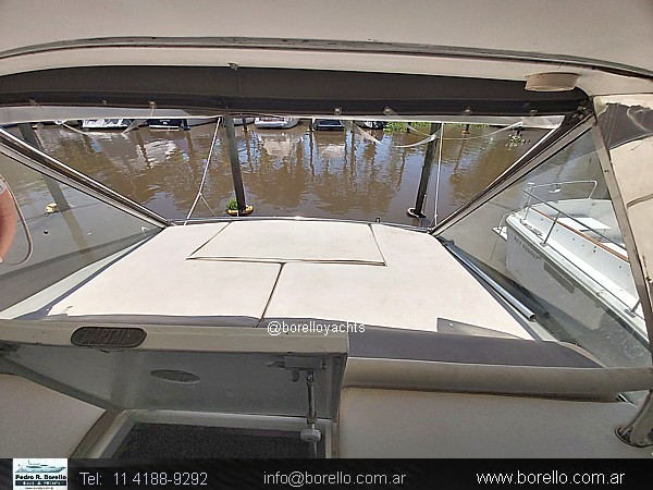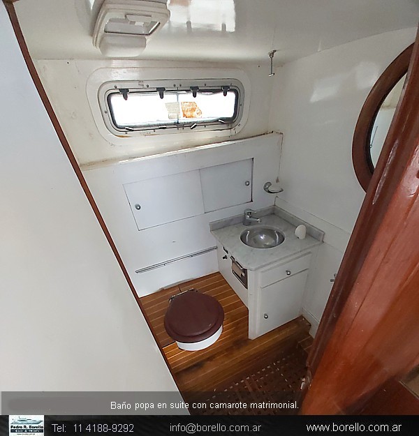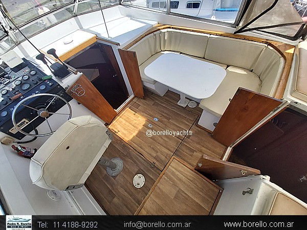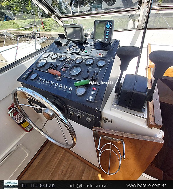 VHF, ecosonda, compás, cocina con horno, heladera, tablero eléctrico llaves térmicas, inodoros eléctricos en ambos baños, techo rígido con cerramiento completo, plataforma de popa con escalera, malacate eléctrico. . |