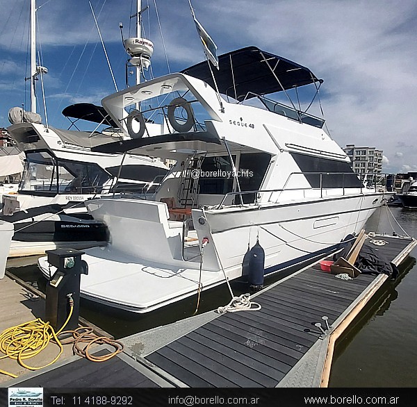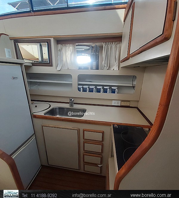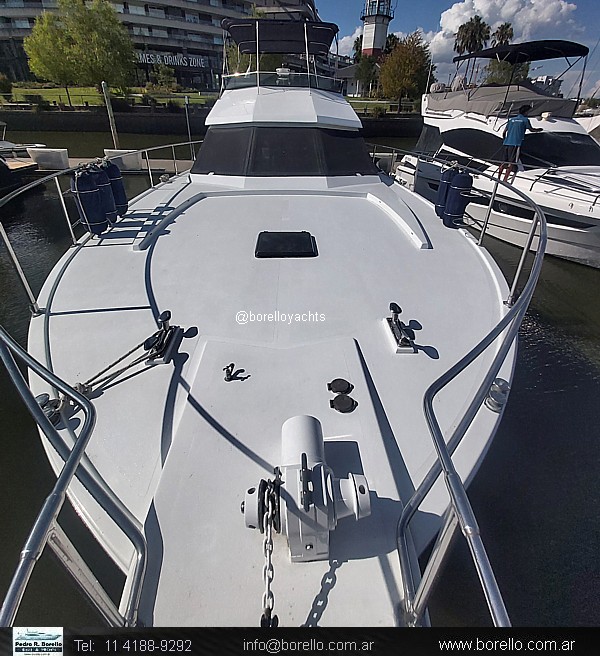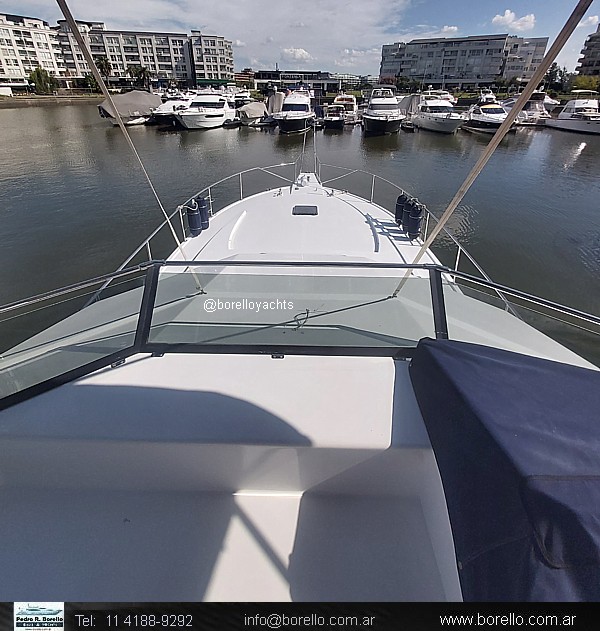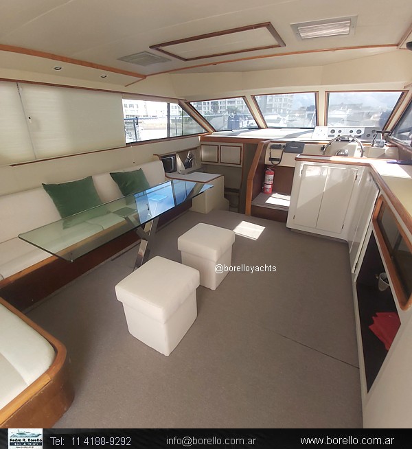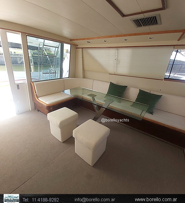 Barco muy generoso en todos sus espacios, pasillo y proa corrida sin escalones. Plástico total, recién repasado. Puntal: 210 mts. Motores Volvo TAMD 71 siempre atendidos por service oficial. |