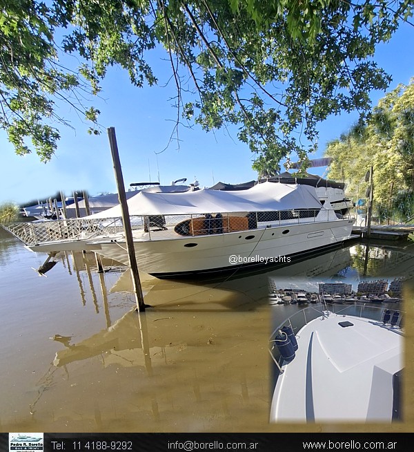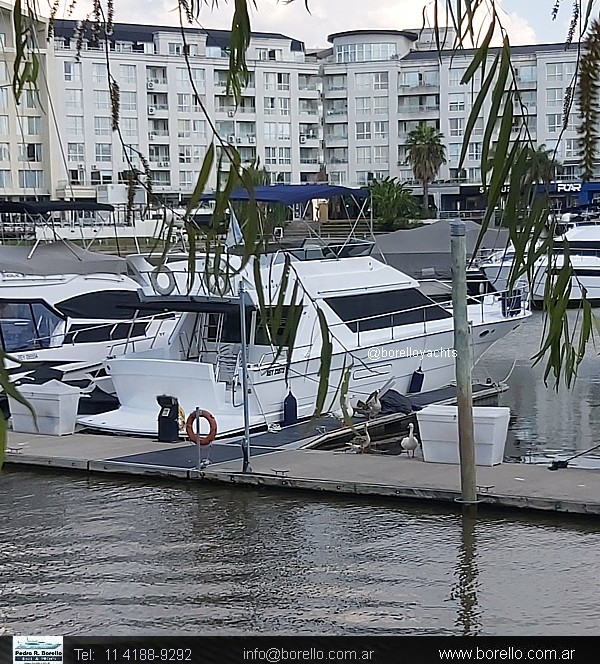 GPS/Plotter (2), bidata autohelm, compás (2), hélice de proa, flaps hidráulicos, VHF (2), bombas automáticas presurizadas todas, convertidor 12/220 V., grupo electrógeno diésel 8 Kva., aire acondicionado d/c, heladera con frezzer, cocina 2 hornallas vitrocerámica, horno microondas, audio, TV, inodoros eléctricos en ambos baños, termotanque, toma tierra 220 V., red perimetral, toldilla fly, carpa de proa, cubre fly, malacate eléctrico, toma tierra 220 V., colchonetas sol proa. (Mira el video apretando la flechita roja para disfrutar de un boat tour y navegación de este lindisimo barco). |