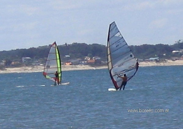 tomada en La Aguada, La Paloma - Uruguay, a la salida del Puerto el 9 de febrero de 2006. Fue una jornada espectacular de windsurf con viento del suroeste de 13-14 nudos. Juan con su Mistral Raceboard y Pedro Borello con F2 excelente sitio para entrenamiento. Visitar Spots para ampliar datos del lugar. |
