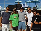 | Podio del Campeonato Brasilero de Fórmula Windsurfing Open donde vemos a Paulo dos Reis en el sitio mas alto contento luego de haber ganado por tercer año consecutivo en esta categoría. El evento fué desarrollado en San Joao Pessoa del 16 al 20 de agosto. Soplaron todos los vientos, se usó vela 10.7 y 9.8 y el mar se vio en todos los matices. | Podio del Campeonato Mundial Raceboard corrido en Marsala, Italia del 31 de Julio al 5 de agosto, en el primer puesto Paco Wirz (Italia), en segundo lugar Paul Leone (Gran Bretaña) y en tercer lugar Marco Andreuccetti (Italia). | Foto de Estaban Moyano (El Negro) anfitrión y Pedro Borello en el campeonato del Río Uruguay en Sept. 06, excelente lugar, excelente camaradería, batucada carnavaleña, buenas playas y una atención de primera fueron los detalles a contar de esta fecha. |